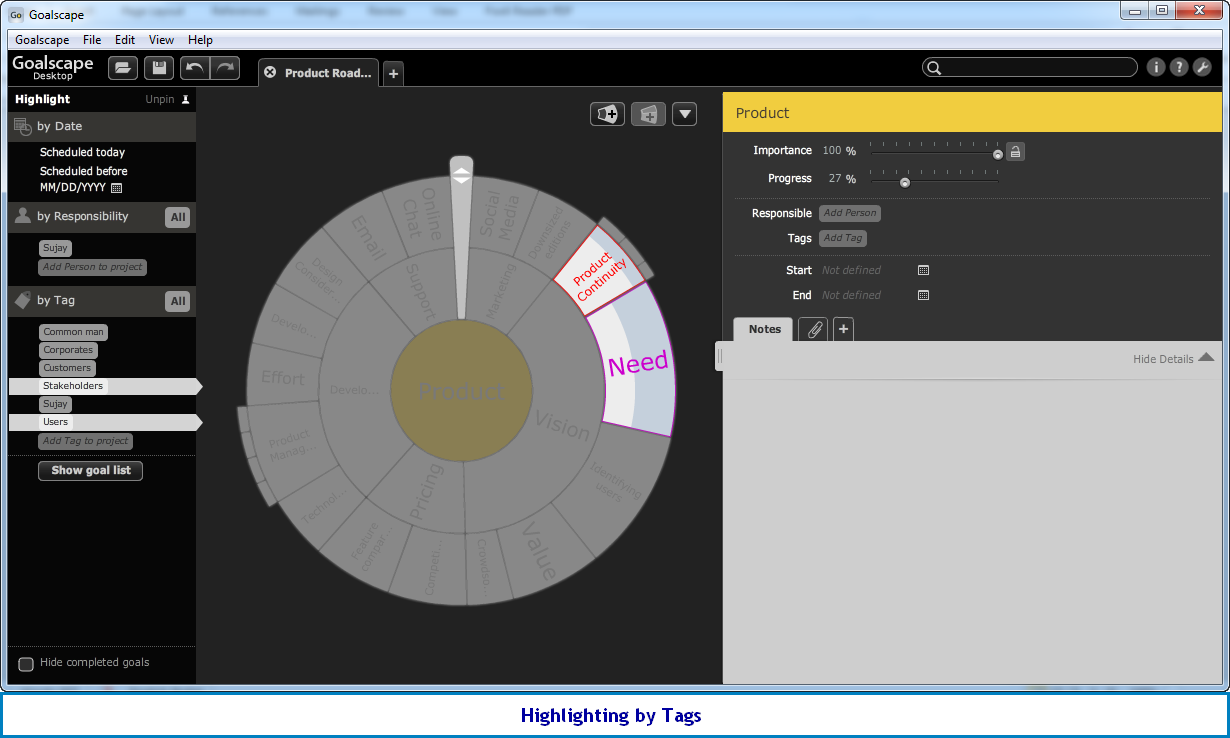 tag “stakeholders” and “users” to Need and Product Continuity; as a product
