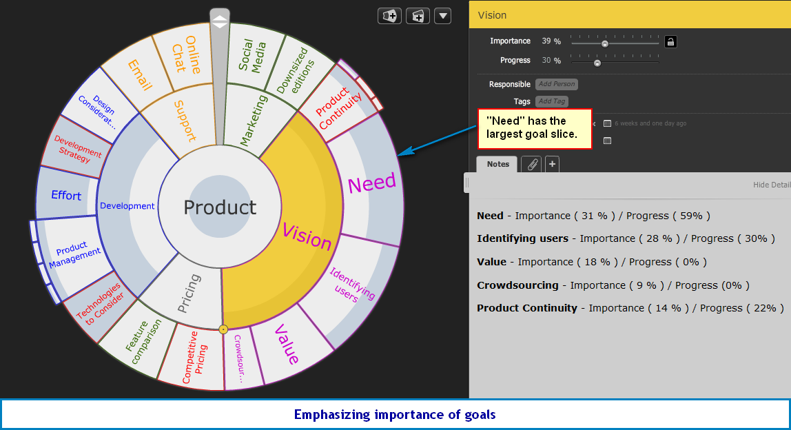 a particular goal. Sliders can be used to set the importance and progress.